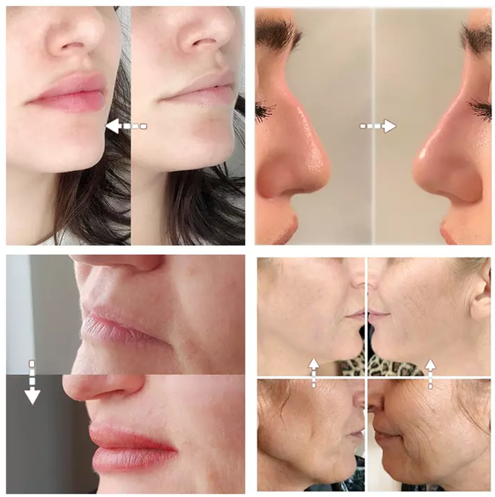 | Treatment | Forehead wrinkle Frown lines Crow's-feet Lip-prints Earlobe enlargement Comersofwrinkles | Nasolabial foids Cheeks padding Lip enhancement | Rhinoplastty Chin enlargement Chest enlargement | Buttocks enlargement Breast enlargement |